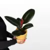 Ficus elastica ‘Abidjan’ elegantna je sobna biljka s kožastim, tamnobordoznim listovima koji odišu suptilnim sjajem i luksuzom. Njezina profinjena silueta i uspravan rast unose mir i karakter u suvremene interijere. Otporna i prilagodljiva, idealna je za stanove, urede i prostore s difuznim svjetlom. Svojim bogatim tonovima stvara dubinu, dok zahtijeva minimalnu njegu. Savršena kombinacija za ljubitelje zelenog minimalizma.